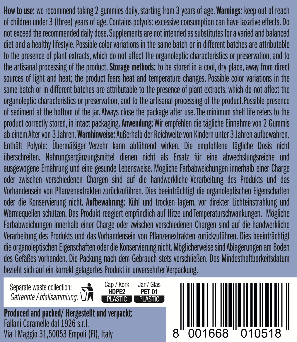 Si consiglia l’assunzione di 2 gummies al giorno.