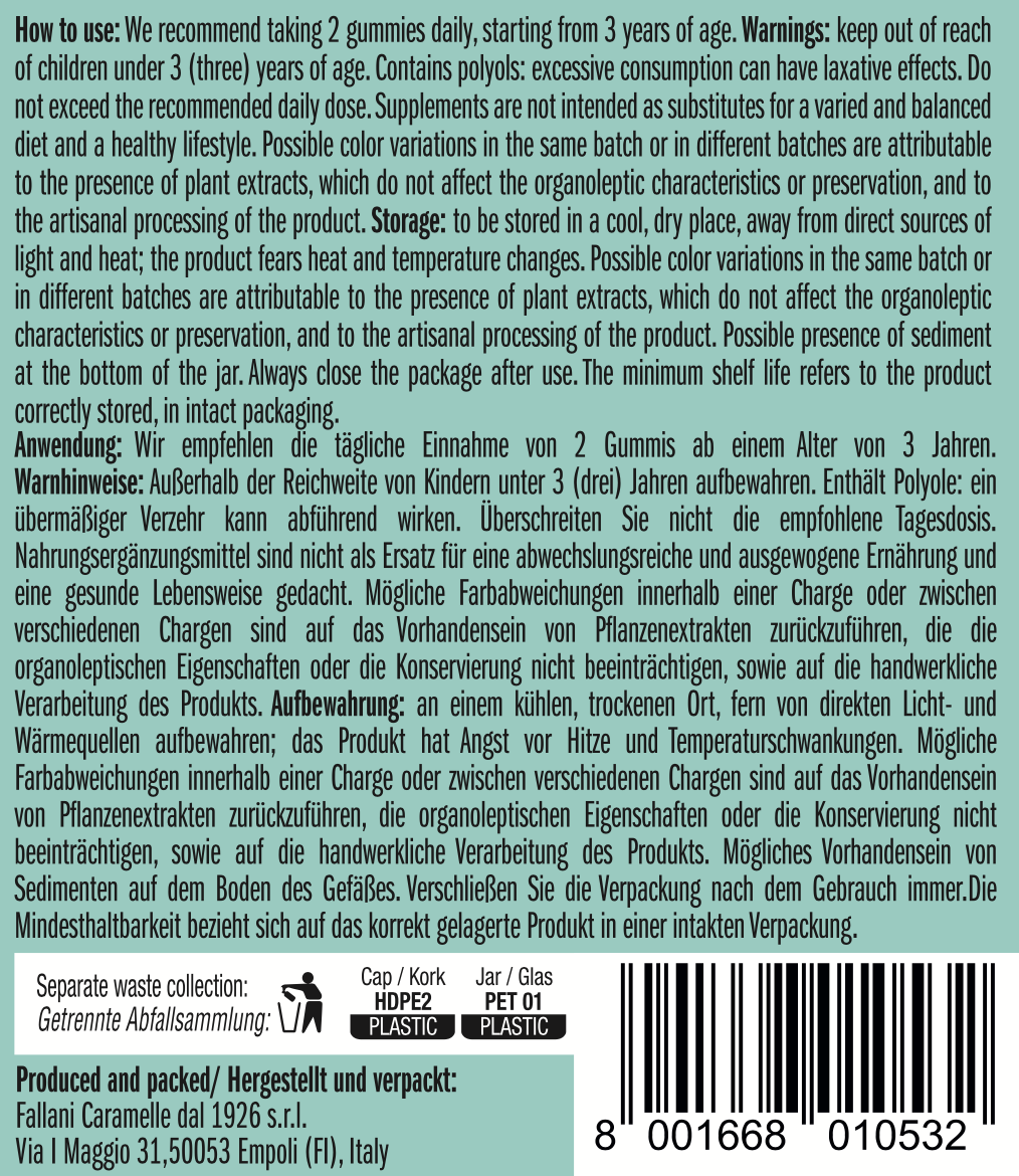 Si consiglia l’assunzione di 2 gummies al giorno.