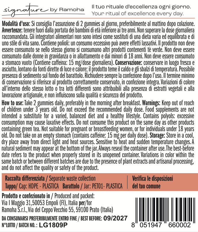 Un rituale mattutino completo, che accompagna le tue giornate intense con energia naturale, focus e benessere mentale, in un formato gummy piacevole e pratico da assumere.