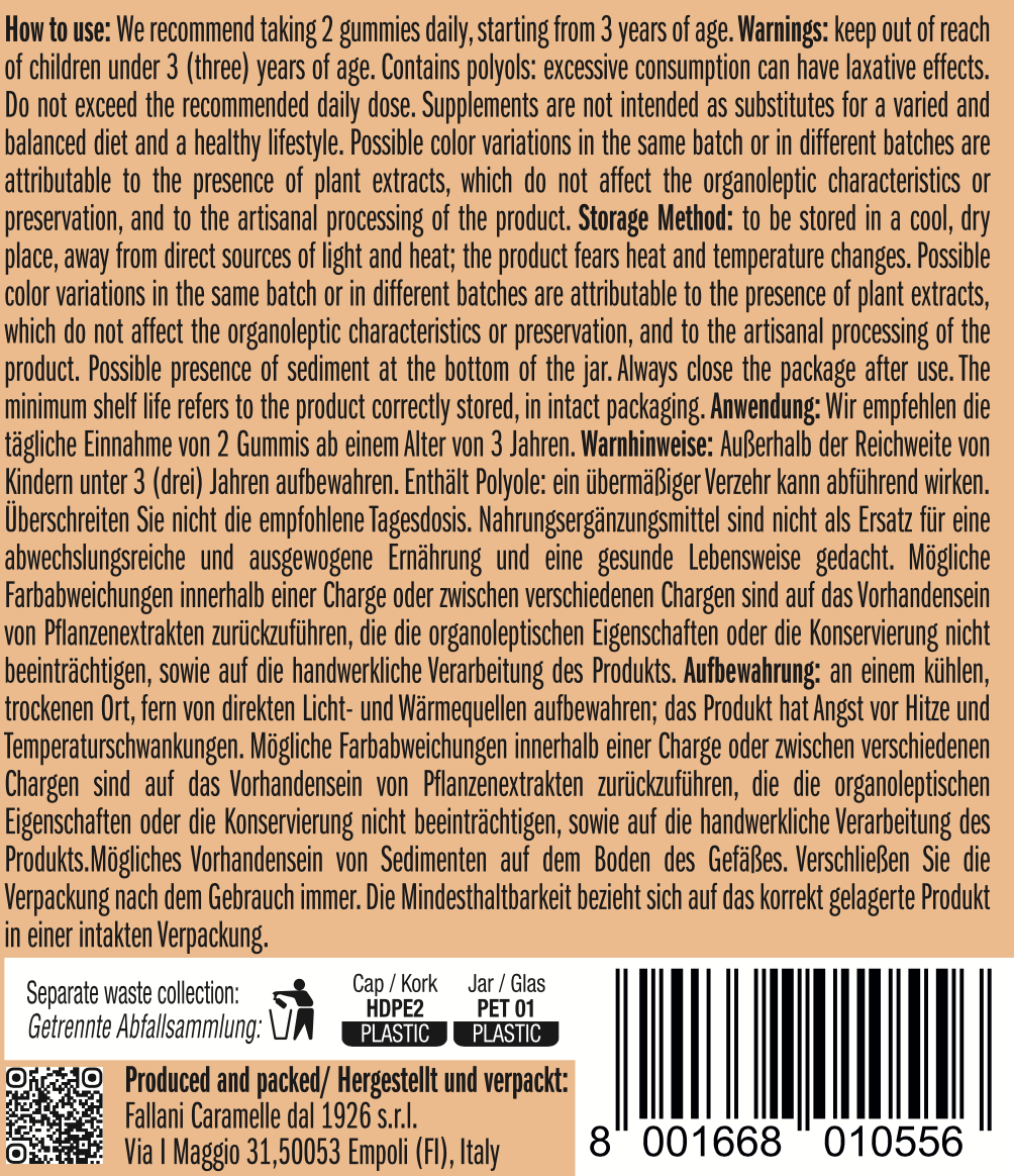 Si consiglia l’assunzione di 2 gummies al giorno. Non superare la dose giornaliera consigliata.